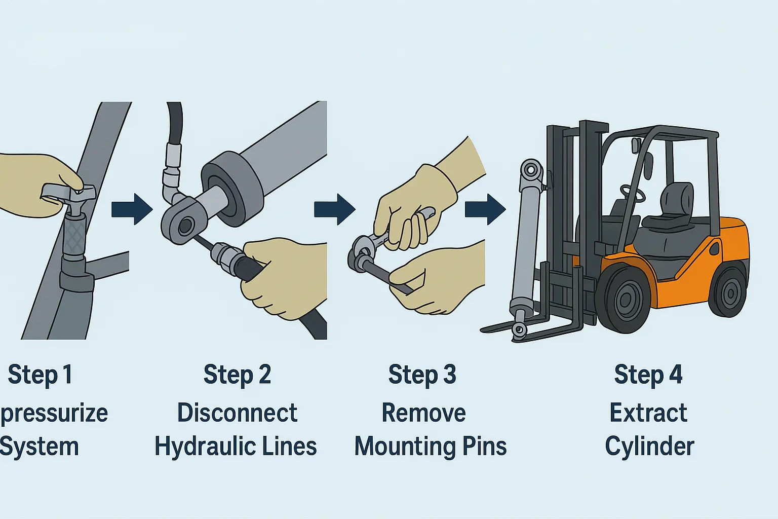 Да бисте правилно уклонили хидраулични цилиндар на виљушкару, кључни су редослед корака и детаљи операције. Неправилан рад не само да ће онемогућити његово уклањање, већ може и оштетити компоненте или изазвати безбедносне ризике.