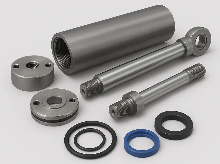 Хидраулични цилиндар је кључни покретач у хидрауличком систему, а његов нормалан рад је неодвојив од сарадње више делова језгра. Делови хидрауличког цилиндра укључују цилиндар, клип, клипњачу, крајњи поклопац, заптивку итд. Сваки део има специфичну функцију, као што је цилиндар цилиндар који се користи за подношење притиска, клип претвара хидрауличку енергију у механичку силу, а заптивка спречава цурење течности како би се обезбедио стабилан рад система. Иако је структура једноставна, свака компонента директно утиче на тачност излаза и животни век опреме.